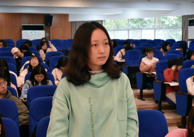 冉院长首先抛出“为什么要加入中国共产党?”这一问题让同学们思考,其次以中国共产党所拥有的三大法宝——统一战线、武装斗争、党的建设以及中国共产党的三大作风——理论和实践相结合、人民群众紧密联系在一起、自我批评这两方面的内容阐述了中国共产党为什么“能”的原因。她指出,因为中国共产党有远大理想追求、有强大领导能力、有严明纪律规矩、有自我革命精神,从而一代又一代共产党人发挥着先锋模范作用。其中,冉院长以“亲民爱民、艰苦奋斗、科学求实、迎难而上、无私奉献”的焦裕禄精神为例,呼吁同学们主动承担责任,发挥自己的优势和特长,拿起“笔杆子”传播正能量。