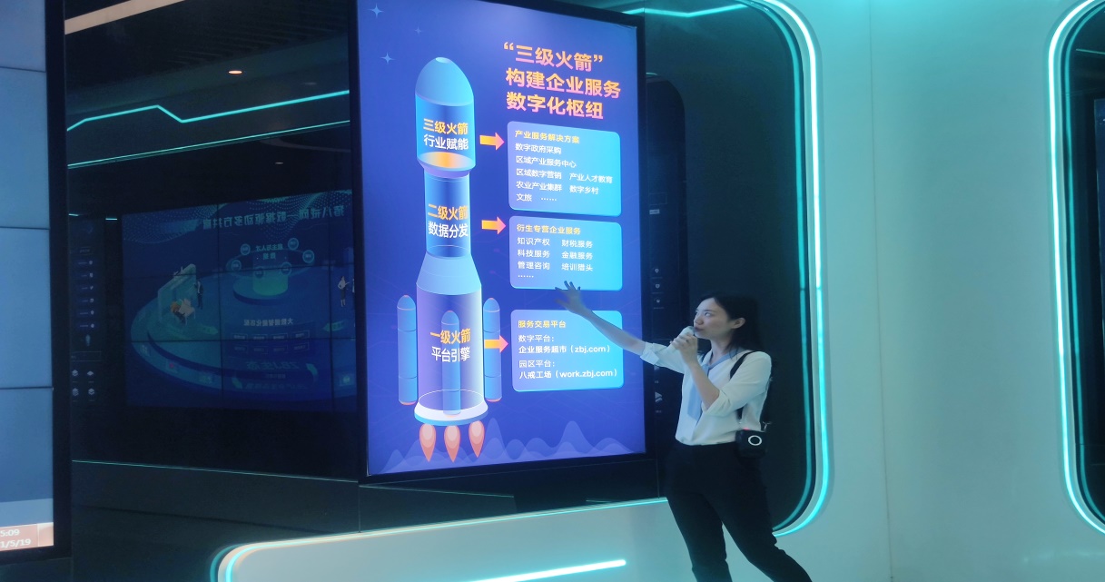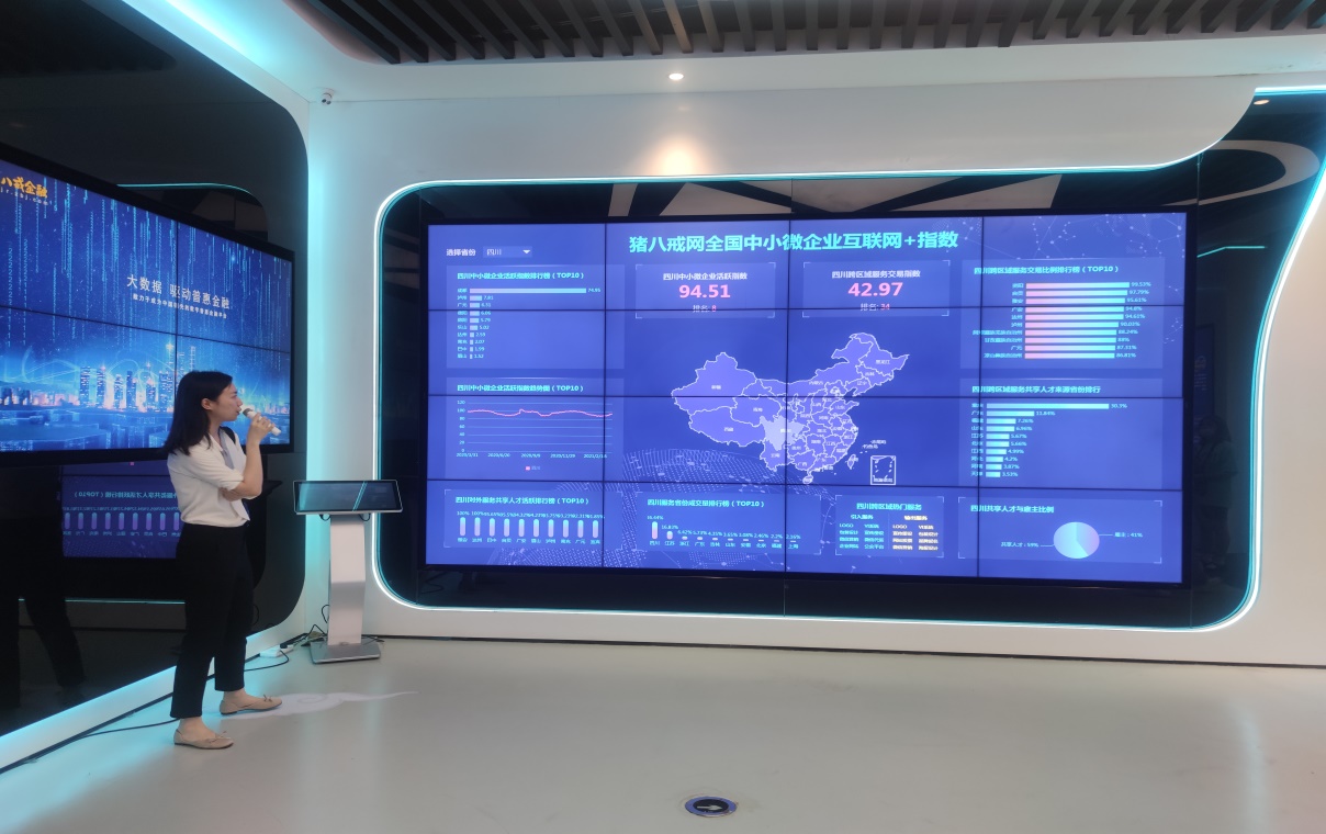 工作人员讲解猪八戒网全国中小微企业互联网+指数