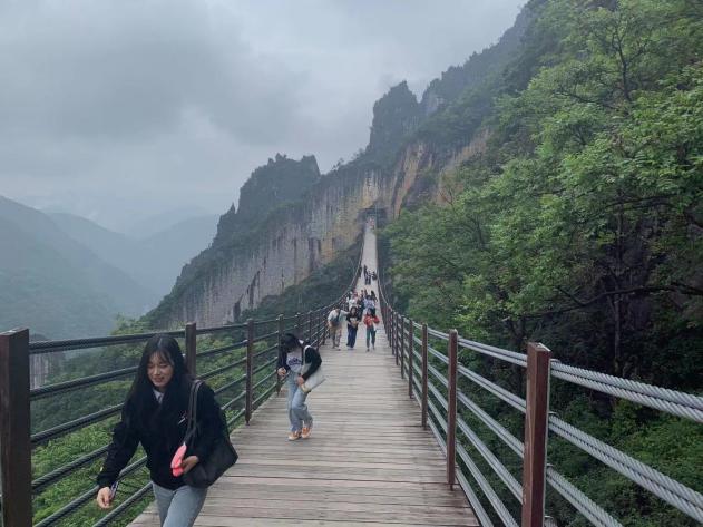 中午经过了一番整理休息,下午大家又驱车前往了本次校外实践的第二目的地——武陵山大裂。武陵山大裂谷景区以地球上最古老的“伤痕”—剧烈地壳运动所致绝壁裂缝称奇,有着“中国第一动感峡谷”美誉。