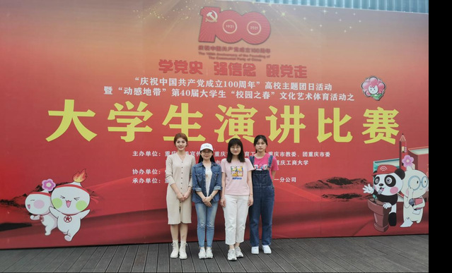 为倡导大学生学史明理、学史增信、学史崇德、学史力行,引导青年了解党的光辉历史、感悟党的初心使命、领会党的创新理论、体认党的精神谱系、传承党的红色基因,坚定不移跟党走中国特色社会主义道路,为全面建设社会主义现代化国家、实现中华民族伟大复兴中国梦贡献青春力量,5月14日,长江师范学院团委选送传媒学院两位选手赴重庆工商大学参加第40届大学生“校园之春”文化艺术体育活动之“大学生演讲比赛”决赛,取得2个三等奖的佳绩。本次比赛由谭喻和蒋婧琳两位老师带队。