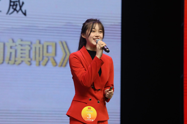韩豪威同学演讲的《外公的旗帜》中描述了外公在战火纷飞的年代中与一面残破旗帜的故事,故事感人至深,透露出满满的家国情怀。“是学生,那就握紧书卷,以知识助国;是工人,那就扛起家伙,垒起国家地基;是学者,那就掌好科技的舵,让国家在世界版图中领航”,句句激昂,令人深思。