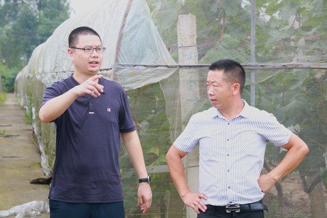 走访过程中,长江师范学院传媒学院学工办主任黄智与葡萄园管理员进行了深刻交流,主要内容包括地域环境、葡萄品种、天然气候、平均盈利等。据了解,该葡萄园具有已然成为义和镇的“网红打卡地”。此外,志愿者队伍对葡萄园进行了深入的拍摄记录,并进行后续宣传。
