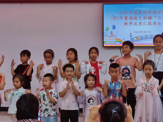 (通讯员:曹蕊涵 聂子琪 白旌宏 龚瑶 李任乐天 张凝予 王秩群)“小朋友们,我们来开火车啦,一个接一个,等会咱们就按这个顺序,上台表演好吗?”7月12日下午4点,传媒学院2021年暑期“三下乡”之“我是中国人,我讲普通话”教学汇演正式开始。机房村便民服务中心会议室外,志愿者们在紧张的进行上台前准备工作。