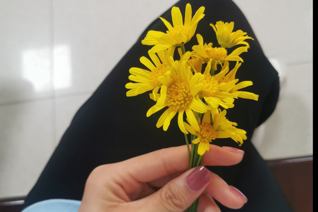 到了下午快上课的时候,小朋友们陆陆续续的来了,韩炜淇小朋友一进来就兴奋的冲我招手神秘地把我拉到一边,悄悄递给我了一束花,这是一束黄色的小野花,绿色的枝条托起黄色的花蕊和花朵,有一种朴实的芬芳美丽,这一次他说“谢谢你,小涵老师”我望着他黑漆漆的大眼睛,突然升起了一股欣慰和骄傲,这几天我们教学小组一直在思索,在这次的主题教学活动中,我们能给小朋友们带来什么,留下什么,在这一刻我懂得了或许真正的道理不在我们的课件中,不在我们的游戏中,而在这一点一滴的细节里,是润物细无声。