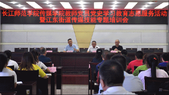 7月9日下午,我校传媒学院教师党支部于江东办事处顺利开展党史学习教育志愿服务活动暨江东街道传媒技能专题培训会。