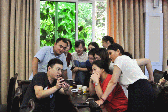 汪志平同志通过分析干部同志手机里的照片,指出了他们的错误并向他们讲解了摄影景别结构和光影运用。