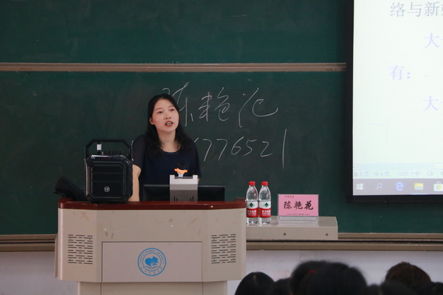 陈艳花老师向同学们讲述了近几年来网络事业发展现状,为同学们分析该专业发展前景以及未来市场,并对往届网络与新媒体专业学生部分获奖情况进行展示。她表示,同学们应该向应用型人才培养模式发展,要积极实践。边学边练,以赛代练,学做合一,拿作品说话。