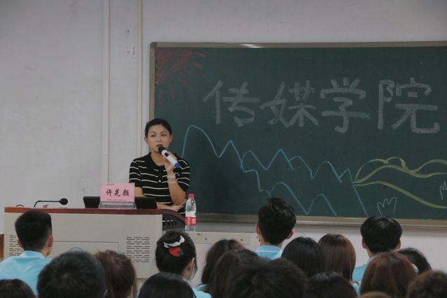 许莞颜老师则聚焦传媒事业发展现状和趋势、传媒学院播音专业发展状况以及播音主持专业人才培养目标及基本要求三方面为同学们介绍了该专业的用途和未来的前景规划,并提醒同学们尽快做好自己大学四年的规划。