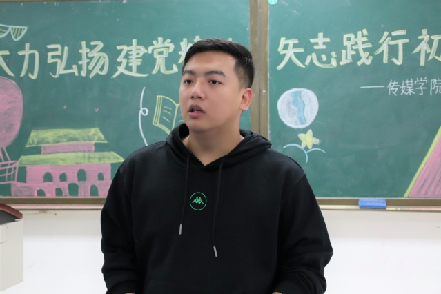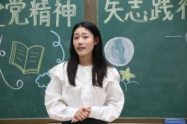 播音与主持艺术专业6班的冯桂颖以《青春向党,共庆百年》为题,用她扎实的专业技巧与充沛的情感传达了她对中国共产党的热爱。她从革命先辈们艰难建党的历史,讲到党为人民服务的辉煌历程,分享了许多感人的党员事迹。中国共产党不畏牺牲,舍生忘死的精神鼓舞激励着同学们。