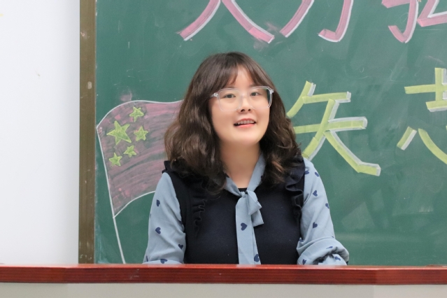 播音与主持艺术专业6班的宋研以《浸初心之甘露,染党心之根本》为题,向同学们讲述了自己家人的浪漫从军路,她从祖辈的故事出发,以真挚的情感引发了评委和观众们的共鸣,她提到,如今的中国国泰民安,国家富强,这盛世也如人们所愿。