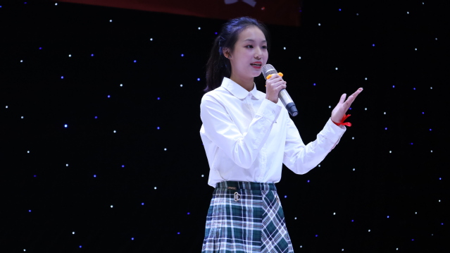 来自新闻传播学2班的谭喜月以《回望百年荣光,谱写青春华章》为题带同学们重返八一南昌起义、井冈山会师的壮观场面,展现出革命先辈们担当使命、对党忠诚的建党精神和英勇斗争的长征精神,并通过讲述自己参与邱少云等烈士的相关纪念活动的经历,为大家解读“哪有什么岁月静好,只不过是有人为你负重前行”的深刻含义。最后她以传媒学院院训引出大家已身披传媒的荣光,应怀着热爱新闻的初心,肩负传达真相的使命,在时代的挑战下努力拼搏,不忘初心,牢记使命,谱写出青春的华章。