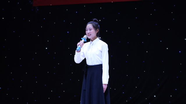 来自播音与主持艺术6班的宋妍以《浸初心之甘露,染党心之根本》为题带领大家探寻党的初心。她拿起“时间胶囊”,带同学们穿梭到到百年前共睹中国共产党的诞生,讴歌党的光辉历史。并且她还介绍到自己的爷爷作为一名解放军战士,一生都在践行言传身教、不忘初心跟随党的信仰与使命。最后她引用鲁迅先生所言“中国青年要摆脱冷气向上走,这就要我们追随党的光辉,温暖中国大地”提出青年一代唯有不忘初心,方可善作善成、一往无前。
