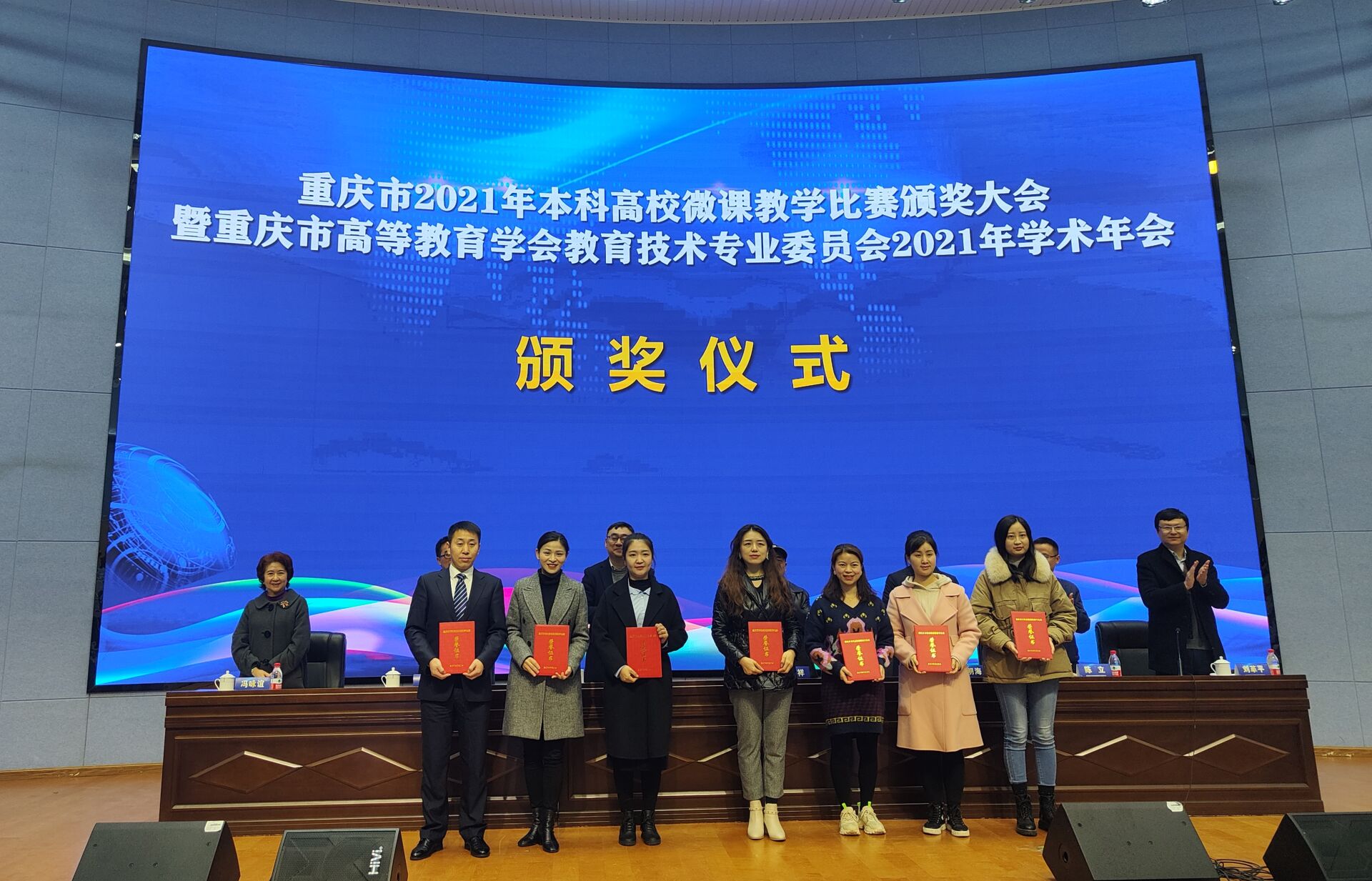 2021年12月10日,“重庆市2021年本科高校微课教学比赛颁奖大会暨重庆市高等教育学会教育技术专业委员会2021年学术年会”在重庆对外经贸学院成功举行,我院播音与主持艺术专业教师许芫颜的微课作品 “有声语言特有的标点符号——停连”在本次大赛中斩获一等奖。