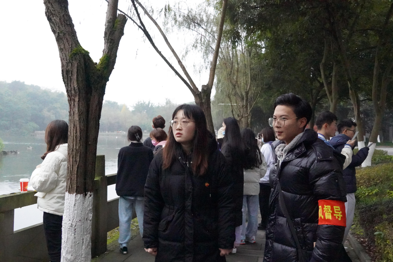 他们深入教室查看学生早晚自习情况,并在鉴湖对同学们的早功力出勤进行检查。检查主要以查看学生有无迟到或携带早、晚餐进入教室等违规违纪情况为主,并对学生展开文明劝导和禁烟督导。同时,各级辅导员对各班级进行听课巡课,督察学生的上课情况。