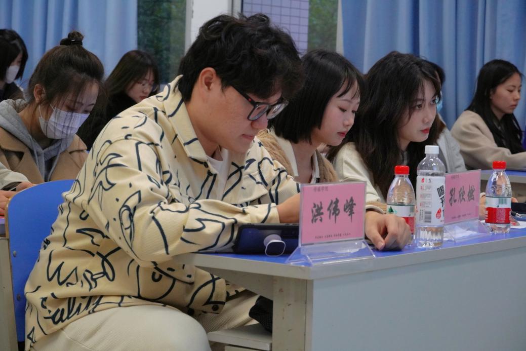 赛后,洪伟峰学长与方燕学姐对此次比赛分享了自己的看法。洪伟峰学长说,此次海报的主题是“校园安全”,但存在队伍偏题的现象;其次,海报设计过于老套,选手应该用鲜明的主题,统一画风。方燕学姐认为,作品要原创,以画为主,以字为辅,要考虑到现代的阅读习惯,字体顺序要从上至下或者从左至右,以免引发误解。