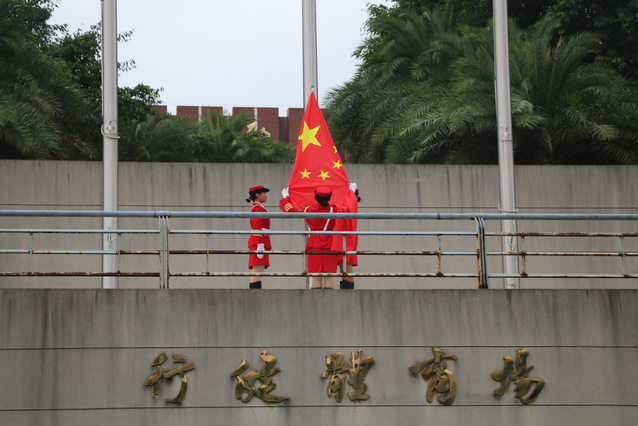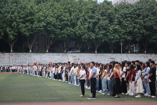 9月8日清晨,长江师范学院于行健体育场举行了升旗仪式。7时30分,升旗仪式正式开始。最先出场的是国旗护卫队,笔挺的军装衬得她们身姿挺拔,肩章在晨色里闪着微光,踢腿摆臂整齐划一,脚步声震得地面轻颤,护送国旗走向升旗台。激昂的国歌奏响,鲜艳的五星红旗冉冉升起,迎风飘扬。全体师生庄严肃立,面向国旗行注目礼。