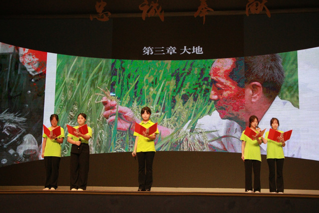 目光聚焦科技发展,现代农业与生物工程学院姚佳妤老师从改革开放初期“科学技术是第一生产力”的著名论断讲起,重点介绍了邓小平同志南方谈话的历史意义和袁隆平院士培育杂交水稻的感人事迹。通过影像与朗诵相结合的方式,同学们共同歌颂了袁隆平院士“把一生浸在稻田里”的赤子情怀和为民奉献精神。她指出,生命科学的探索永无止境,激励学子们以袁隆平为榜样,把论文写在祖国的大地上。