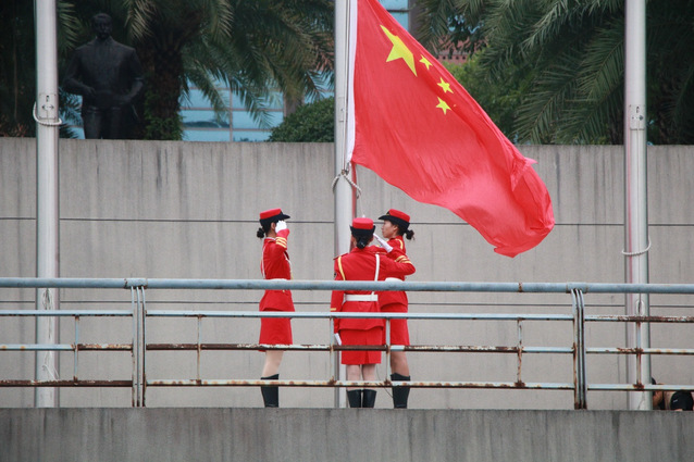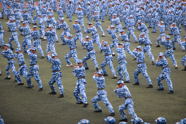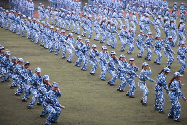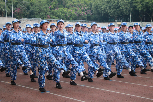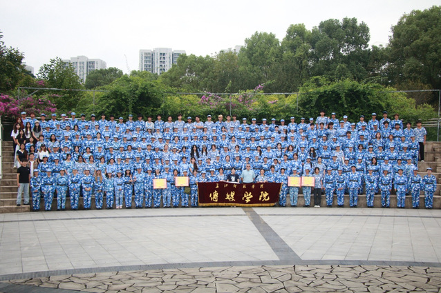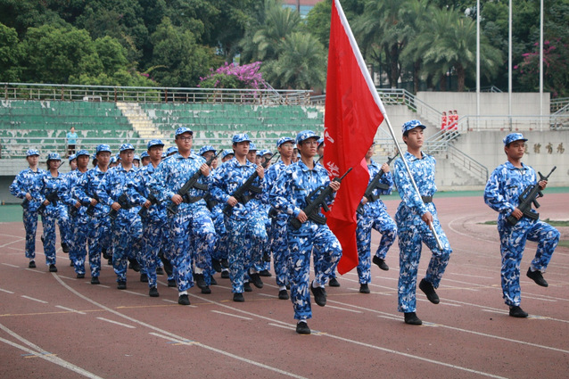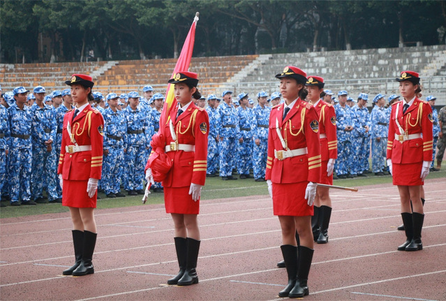 随后进行的分列式汇报表演中,各连队方阵步伐整齐、口号嘹亮,以挺拔的军姿依次通过主席台。男子军体拳方阵动作刚劲有力,展现阳刚之气;女子匕首操队伍招式干净利落,尽显柔中带刚的飒爽英姿。传媒学院学子高呼“传古博今,上善新民,传而有道,以文化人”的院训,以严整的军容、坚定的步伐,完美展现了传媒人的精神风貌,赢得现场阵阵掌声。