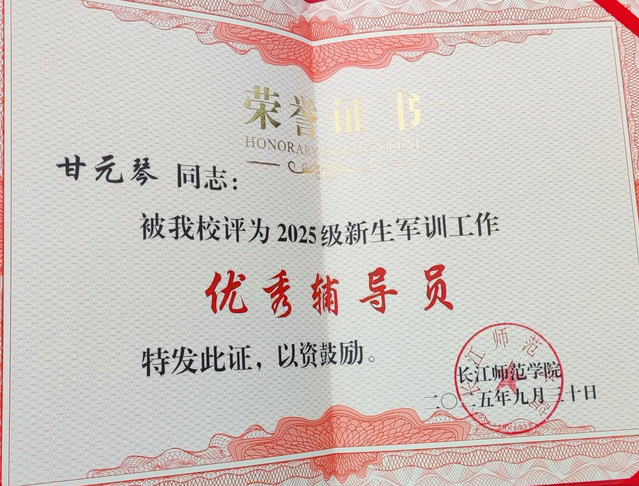 在表彰环节,校党委常委夏英宣读了军训表彰决定。传媒学院凭借出色的组织与表现,荣获“歌咏比赛一等奖”“团体二等奖”“组织工作三等奖”“队列训练三等奖”。2025级新生辅导员甘元琴获评“优秀辅导员”,展现了传媒学院师生团结奋进的优良作风。