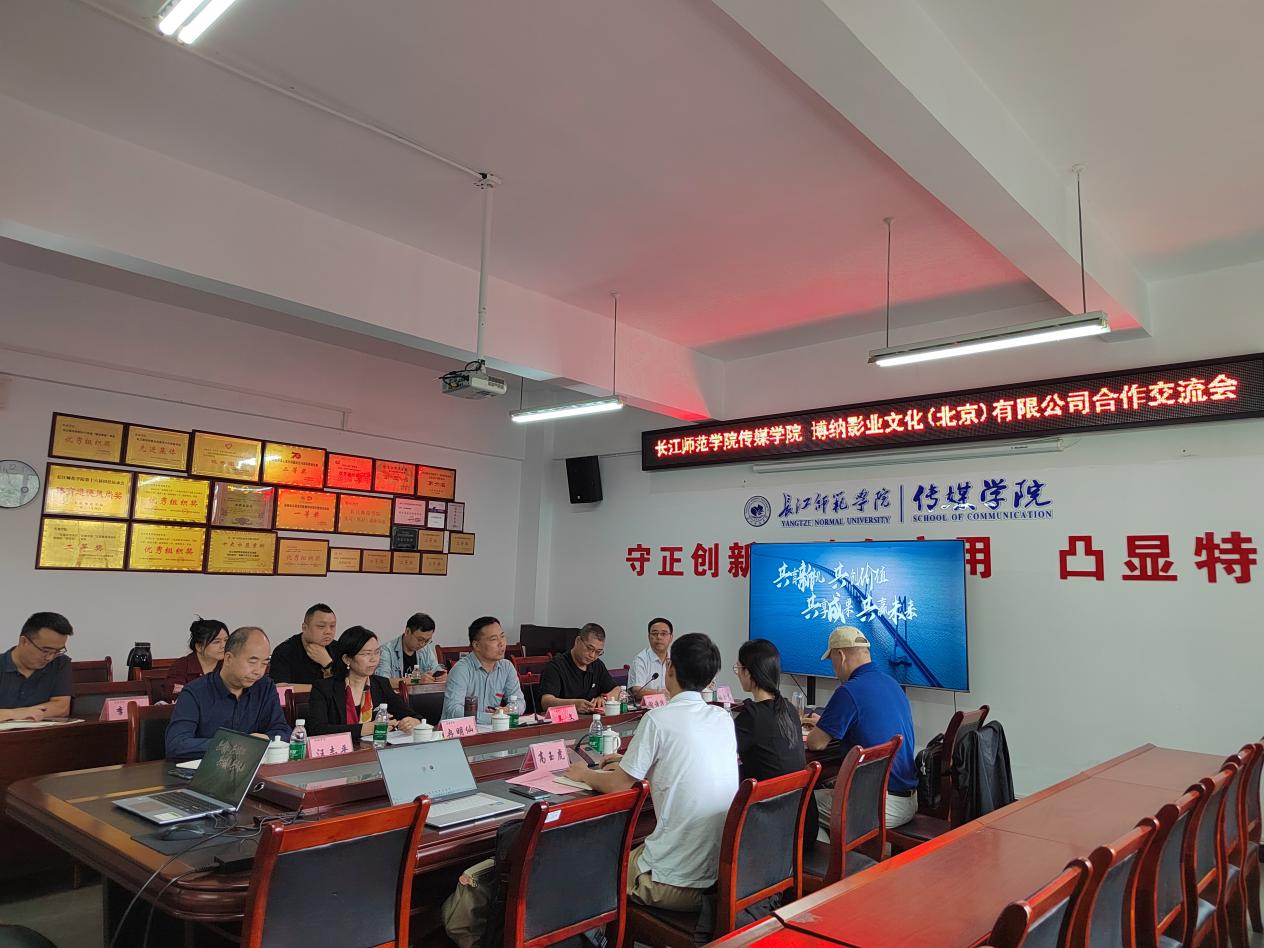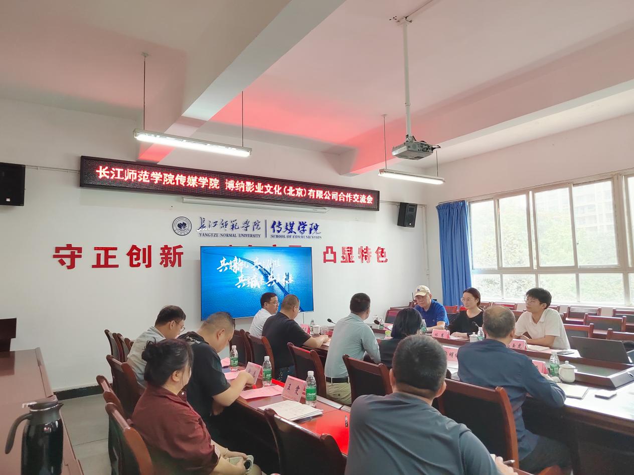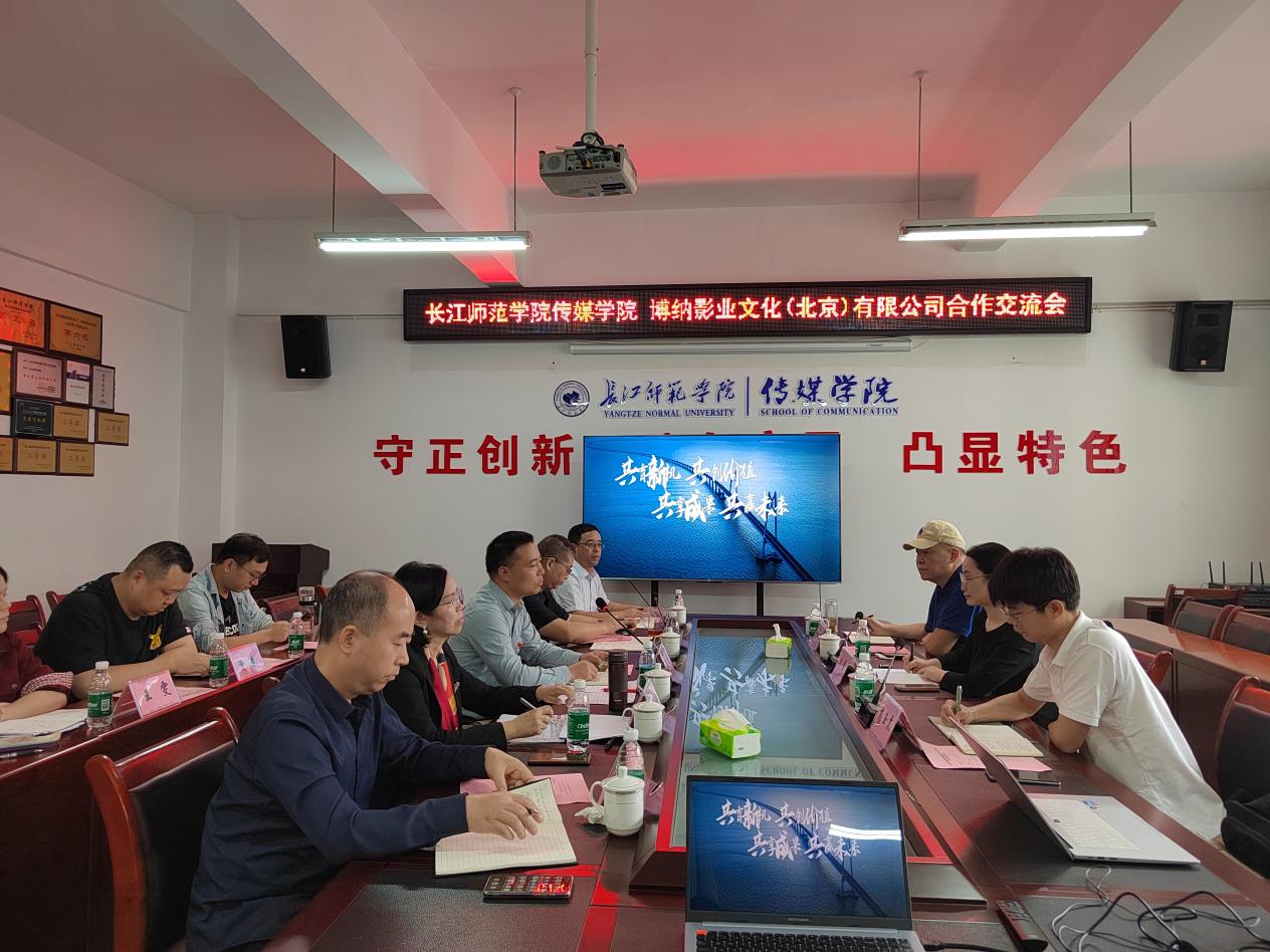 2025年10月16日,长江师范学院传媒学院与博纳影业文化(北京)有限公司合作交流会在格致楼2313会议室成功举办。博纳影业文化(北京)有限公司副总经理林慧、市场总监高玉虎、项目顾问田晓林,长江师范学院党委常委、副校长吴文、传媒学院院长冉明仙、传媒学院副院长汪志平、传媒学院相关科室负责人和教师代表出席会议。会议由传媒学院党委书记谢诗茂主持。