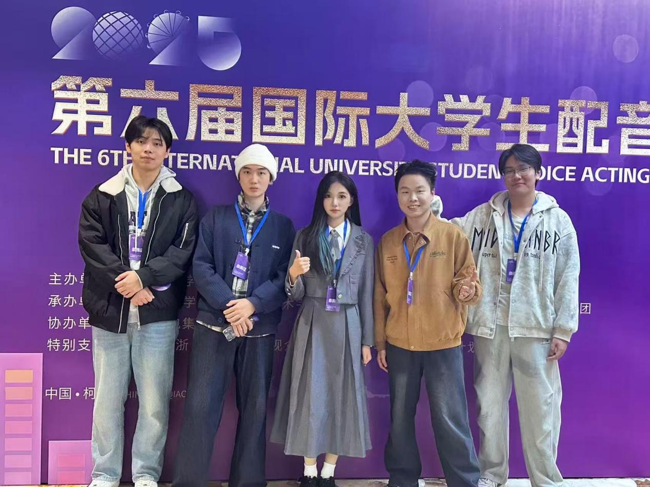 10月29日至11月1日,2025年第六届国际大学生配音大赛暨鉴湖声音艺术季在绍兴柯桥体育馆盛大举行。全球437所高校的青年声音汇聚一堂,来自中国、俄罗斯、日本、韩国、乌兹别克斯坦、新加坡、缅甸、马来西亚等国的选手同台竞声。传媒学院播音与主持艺术专业学生高翔、许讯以优异成绩斩获全国特等奖,这是我校传媒学院播音与主持艺术专业学生连续第二次获得全国特等奖,张倩、黄茂田、岳文博均在赛事中表现优异。
