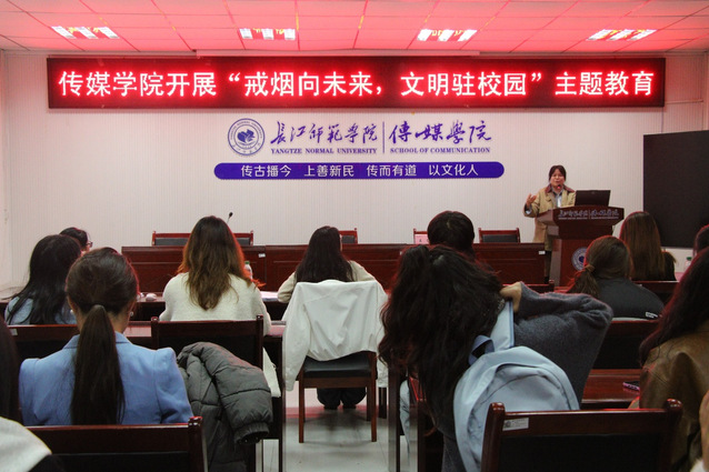 为深化校园文明建设,增强学生健康意识,11月16日至18日,传媒学院安排面向各年级各班的戒烟系列主题教育宣讲。11月18日晚,传媒学院在格致楼2308会议室组织开展“戒烟向未来,文明驻校园”系列主题教育活动。传媒学院学工办主任兼团委书记王雯担任主讲人,2024级辅导员谭喻、2025级辅导员甘元琴出席此次活动,各年级学生代表参与本次活动。