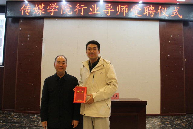 为帮助学生将新闻理论转化为实战能力,明确职业发展方向,提升就业竞争力,11月28日上午9点,传媒学院特邀全国十佳记者、重庆广电集团(总台)《今日关注》栏目记者陈正直,在玉衡学术报告厅开展题“以笔为媒,传递时代之声”的专题讲座,并举行行业导师受聘仪式。传媒学院副院长汪志平、播音与主持艺术专业系主任杨竞豪、专业教师程赛博出席本次活动,2023级、2024级全体播音与主持艺术专业学生全程参与。传媒学院副院长汪志平为陈正直颁发行业导师聘书。