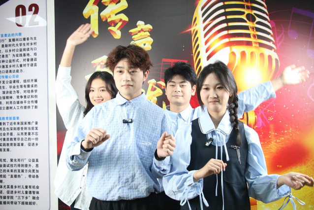 “回忆剧场”环节聚焦连线毕业学姐雷燕菲——“传声无忧 聚光而行”直播间的发起者之一。雷燕菲学姐通过连麦的方式讲述了“传声无忧 聚光而行”的发展历程,分享成长点滴与初心坚守,让不少观众感动。随后,传媒学院“光影铸魂”理论宣讲团成员余洁现身直播间,分享了红色宣讲视频创作时,如何在兼顾历史真实性的同时适配青年受众的接受习惯,还谈到团队以传媒专业所长传递红色精神的创作初衷,以及通过视频让红色故事贴近当下青年的心愿。