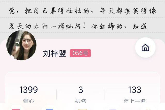 活动通过“爱心值”排名机制激发创意与参与度,优秀参与者均获得电子荣誉证书,其作品将通过邮寄或线上展览形式送达留守儿童手中,成为陪伴他们成长的特殊礼物。优秀作品中,郭雨含(03号)以1668爱心值荣登榜首,其明信片以“星空与种子”为意象,寄语中写道:“思念是成长的养分,爱是跨越千里的桥梁。”刘梓盟(56号)以1399爱心值位列第三,她用“村口的小花”“田埂上的蝴蝶”等童趣意象,叮嘱孩子们“好好吃饭,好好睡觉,每天笑得像夏天的太阳”。王柯楠(168号)以诗意的语言寄望:“读很多的书,走很远的路,学会爱人与被爱,成为独立坚强、温暖明亮的人”;尹珮瑜(169号)则聚焦留守儿童的生活细节,称赞孩子们独立完成作业与家务的行为,鼓励他们“与父母并肩作战,分享生活的每一份成长”。