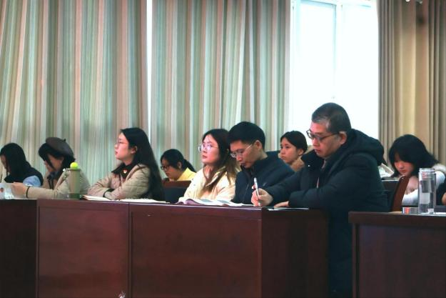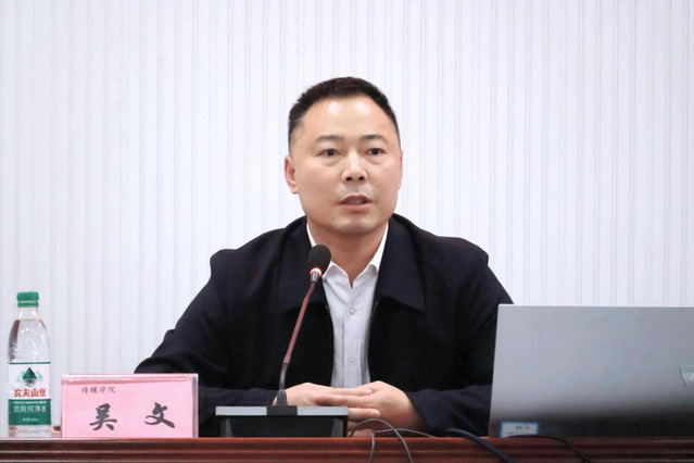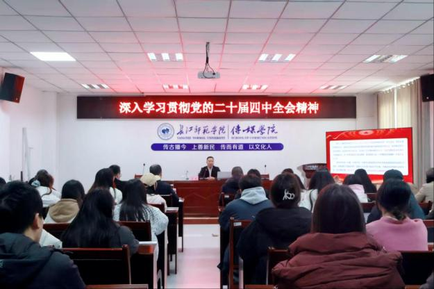 11月28日下午,传媒学院在格致楼2308会议室召开党的二十届四中全会精神宣讲会议。学校党委常委、副校长吴文为传媒学院师生党员和入党积极分子作党的二十届四中全会精神专题宣讲报告。会议由学院党委书记谢诗茂主持。