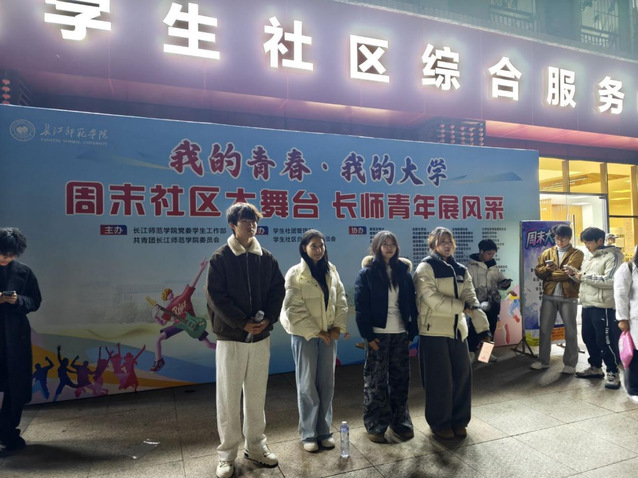 为深入贯彻落实“以学生为本”的育人理念,营造温暖、包容、昂扬的校园文化氛围,展现长师青年的风采,11月28日晚6点,校团委在北十六小广场举办“我的青春·我的大学”周末社区大舞台活动,传媒学院繁星戏剧社应邀参与本期活动。本次活动聚焦校内学生需求,突破单一表演形式,将“才艺展示”“技能互助”“兴趣共创”三大板块结合,打造专属长师学子的周末成长平台,让青春在校园里既富活力又有深度。