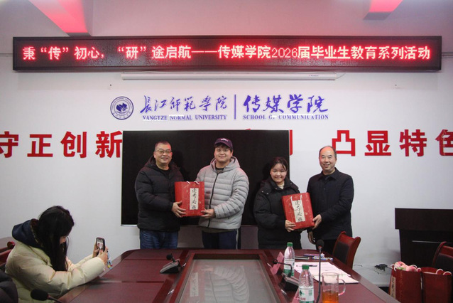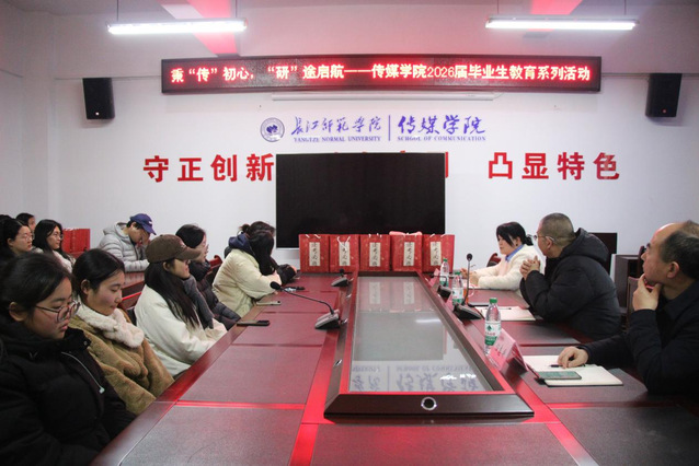 为鼓励考研学子积极备考,缓解考试压力,增强迎考信心,12月10日下午2时,传媒学院于格致楼2313举办2026届考研学子慰问大会。传媒学院党委书记谢诗茂、副院长汪志平、学工办主任兼团委书记王雯出席本次活动。