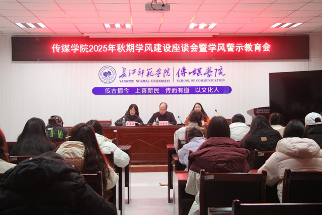 为严肃考风考纪,强化学生纪律意识,确保期末教学工作平稳有序,12月10日中午12点,传媒学院在2308会议室召开了2025年秋期学风警示教育大会。传媒学院副院长汪志平、教学秘书李奇骏、2024级辅导员谭喻出席本次会议,全体学风建设部干部及各班学习委员参加。
