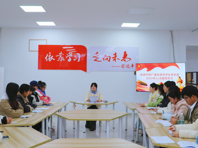 随后,支部书记王雯向过“政治生日”的党员寄语,希望他们持续深化对党的创新理论和党的二十届四中全会精神的学习理解,不断增强政治自觉和行动自觉。她强调,作为广播电视学专业的学生党员,要主动发挥专业优势,积极参与社区政策宣讲、文化传播、志愿服务等工作,在贴近基层、服务群众中锤炼党性、增长才干,把“小我”融入“大我”,以实实在在的作为彰显党员的责任与担当。