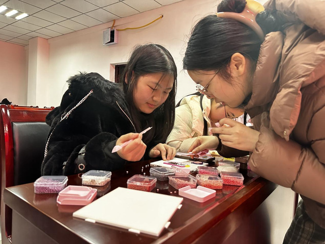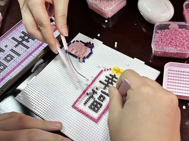 为进一步增进交流、舒缓压力,宣讲结束后设置了拼豆互动环节。谭喻老师与同学们一同参与拼豆创作,现场摆放了丰富的彩色豆粒、镊子和模板。同学们分组协作,在专注的创作中放松身心,在技巧分享中增进彼此了解。大家充分发挥创意,将对积极心态的理解融入作品创作。这种沉浸式的手工体验,不仅让同学们在忙碌的学习生活中获得了片刻宁静,更搭建了轻松愉悦的沟通平台。