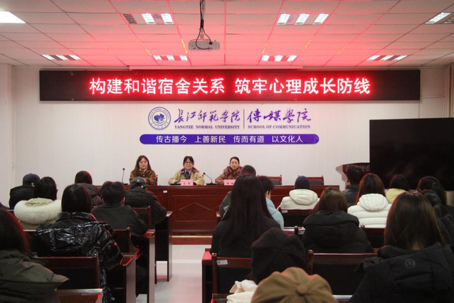 12月19日中午12时,传媒学院在格致楼2308会议室举办“构建和谐宿舍关系 筑牢心理成长防线”主题宣讲活动。活动由传媒学院学工办主任兼团委书记王雯、2024级辅导员谭喻、2025级辅导员甘元琴主讲,学院各级学生干部与各班班委参与此次宣讲。