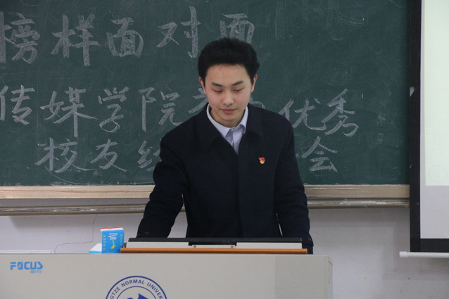 3月13日中午12时,传媒学院在诚意楼208教室举办优秀校友经验分享会。本次分享会特邀我院优秀校友、2021级播音与主持艺术专业5班毕业生林斌担任主讲人,学院各年级学生代表到场参加交流。林斌现就职于中国建设银行重庆涪陵分行,他结合自身学习经历与职场经验,为同学们带来了实用的分享与指导。