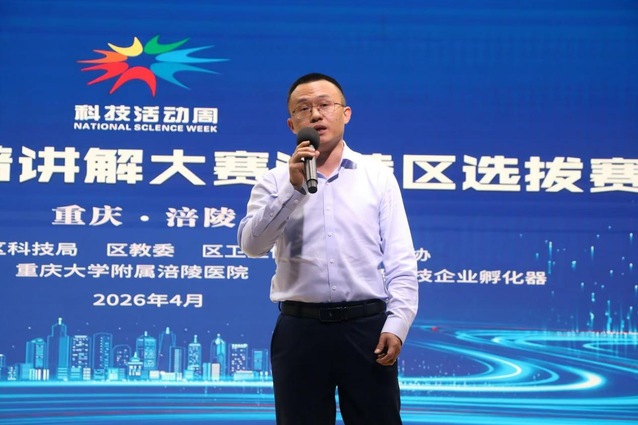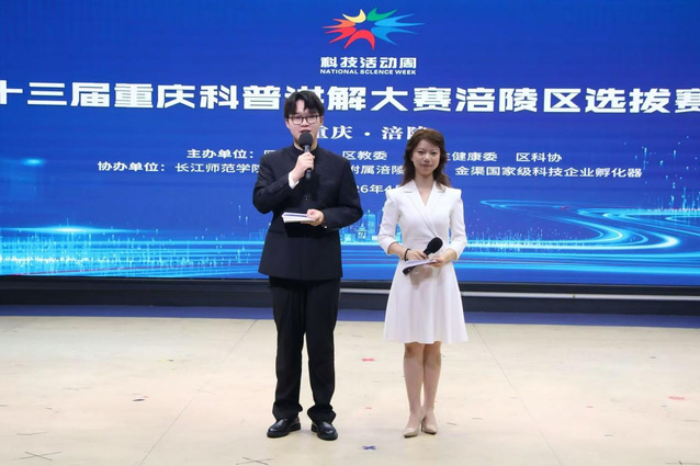 4月8日下午,第十三届重庆科普讲解大赛涪陵区选拔赛决赛在长江师范学院传媒学院演播厅顺利举行。本次大赛由重庆市涪陵区科学技术局、重庆市涪陵区教育委员会、重庆市涪陵区卫生健康委员会、重庆市涪陵区科学技术协会联合主办、长江师范学院、重庆大学附属涪陵医院、重庆市涪陵区金渠企业孵化器有限公司协办。