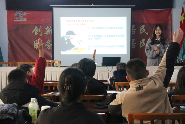 课堂上,志愿者通过投影展示深海生物图片,趣味讲解发光鱼类、海马、海星等生物的特点,引导孩子们主动思考提问。在课程“文字的奇幻漂流”中,志愿者从龟甲上的甲骨文讲起,把汉字从古到今的变化拆成一个个小故事。课堂现场孩子们积极举手参与互动,眼神专注又充满好奇,在轻松的氛围中开启了一场奇妙的知识探索之旅。