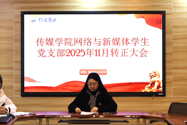 为进一步传承党的红色基因,夯实组织凝聚青年的政治根基,唤醒新时代青年党员的使命担当意识,锻造更多堪当重任的党员骨干。11月24日上午10时,传媒学院网络与新媒体学生党支部于南苑八舍党团活动室开展2025年11月党员转正大会,会议采取线上线下相结合的方式进行。此次会议由支部书记谭喻主持,全体在校党员及预备党员共同参会。