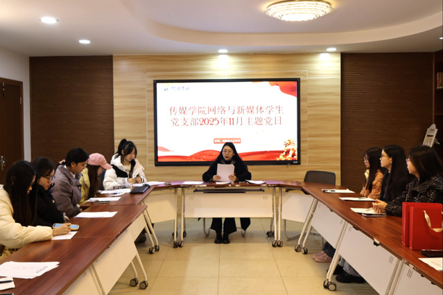 为深入学习贯彻党的二十届四中全会精神,推动《习近平谈治国理政》第五卷学习成果转化为社区党建与基层治理的实际成效。11月24日上午10时30分,传媒学院网络与新媒体学生党支部于南苑八舍党团活动室开展了11月主题党日学习。会议采用线上线下会议相结合的方式进行。此次会议由支部书记谭喻主持,网络与新媒体学生党支部全体党员共同参会。