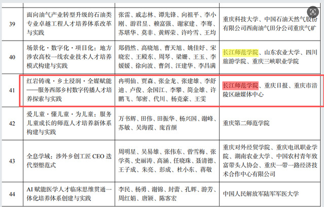 近日,重庆市人民政府印发《2025年重庆市教学成果奖励的决定》(渝府发〔2025〕17号),长江师范学院传媒学院冉明仙院长领衔的“红岩铸魂·乡土浸润·全媒赋能——服务西部乡村数字传播人才培养探索与实践”项目,荣获省级教学成果一等奖。